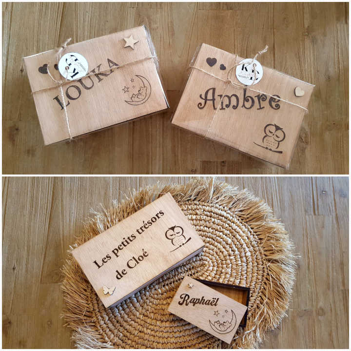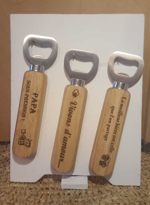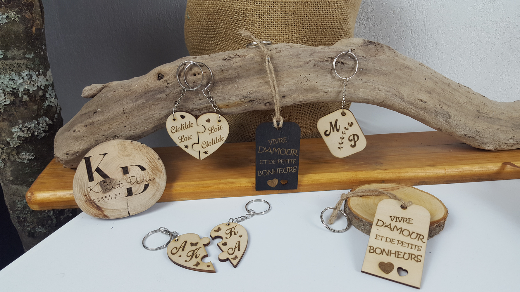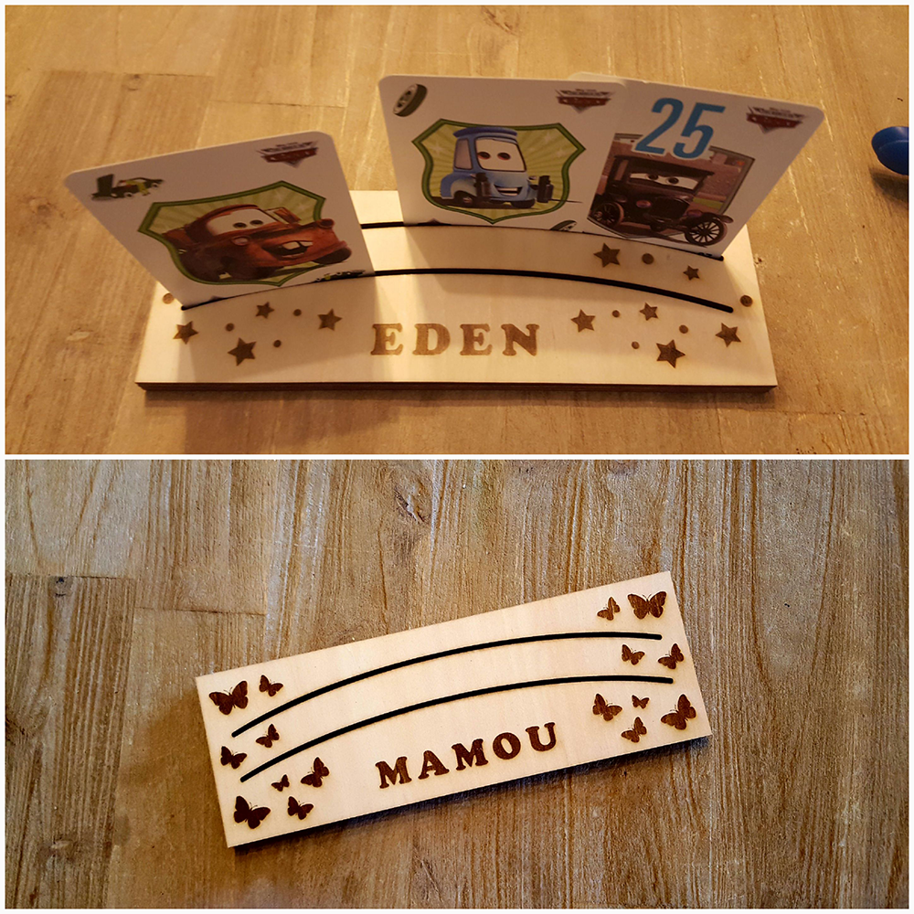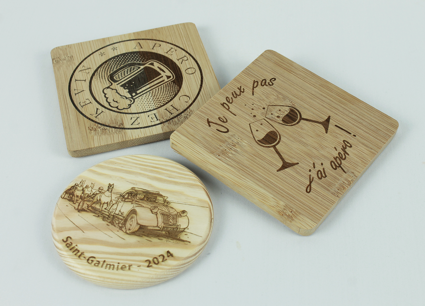 Le bois, une matière noble aux nombreuses essences. La gravure laser sur le bois est une gravure permanente qui offre un choix très varié de réalisation.