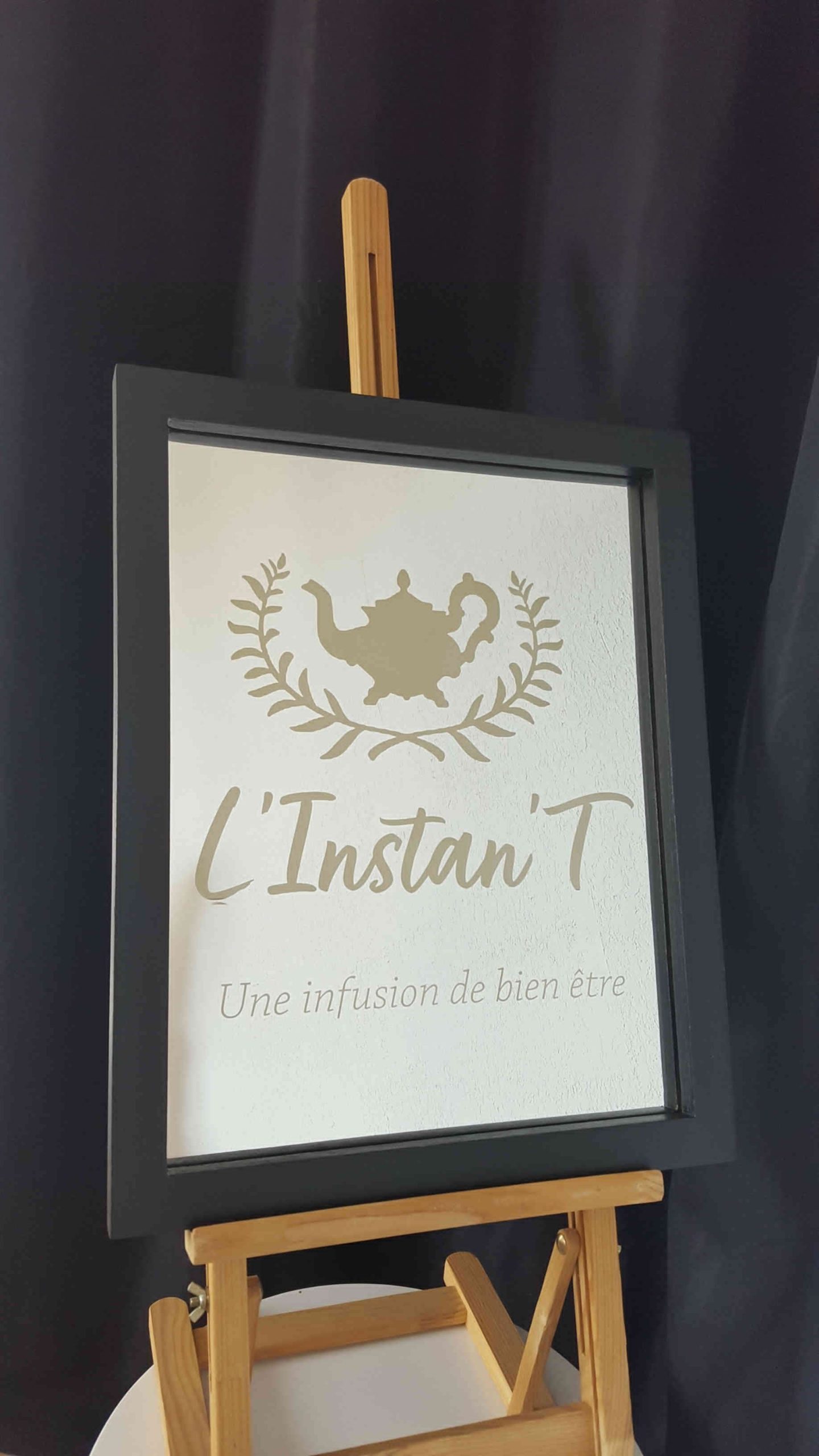 K’art Déko a crée un miroir de décoration pour une boutique de thé,  réalisé avec de la gravure laser sur miroir.