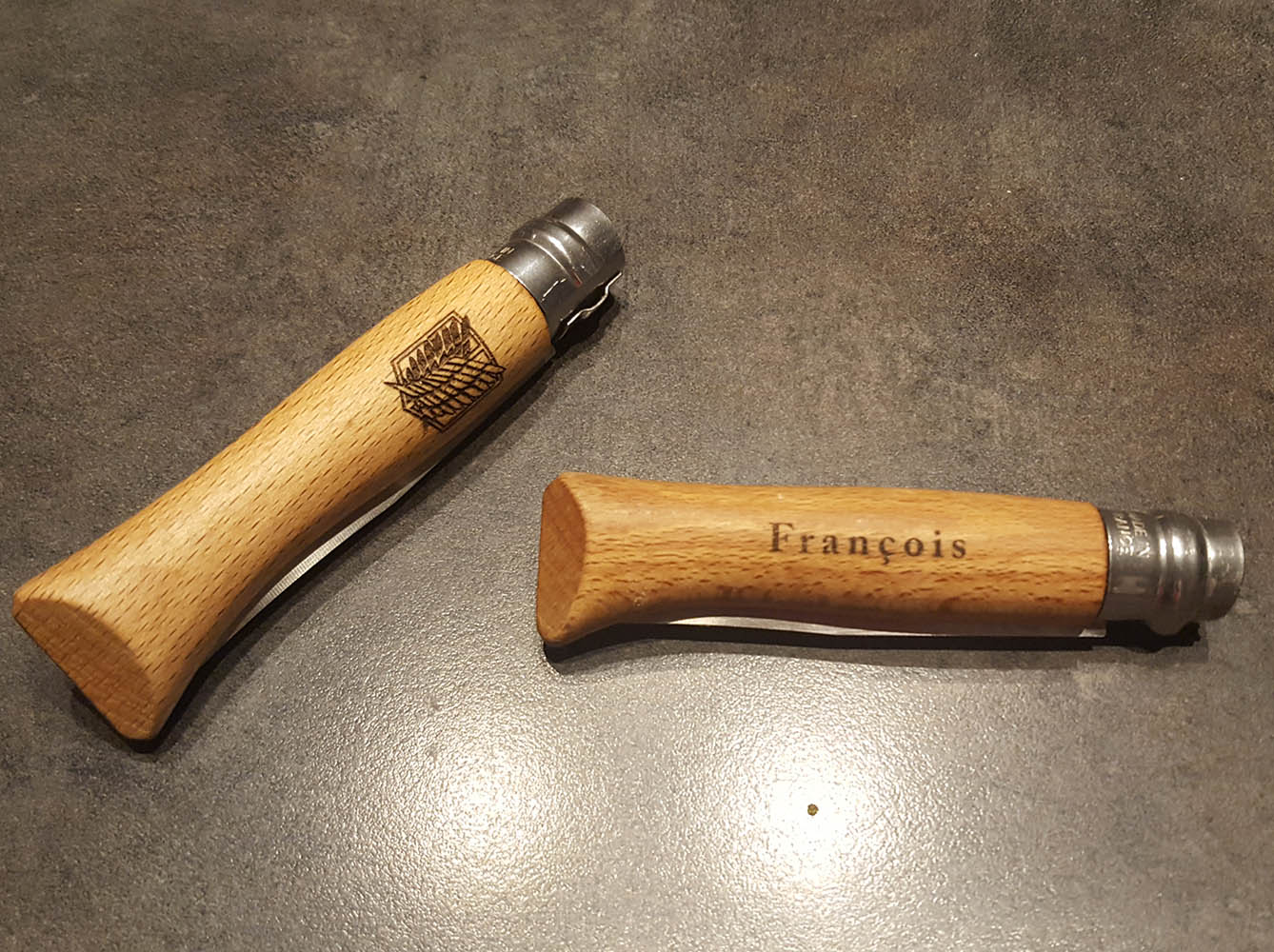 Personnalisation de couteaux avec manche bois.