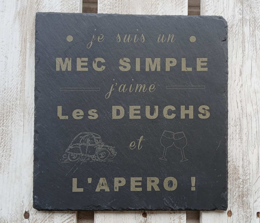 Fan de 2 cv et d'apéro, ardoise 30 cm x 30 cm Dessous de plat ou déco