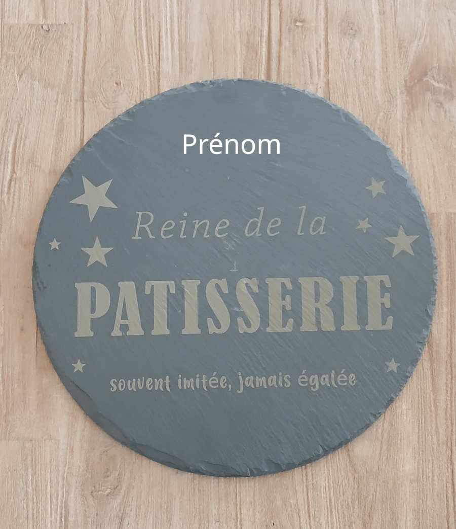 Ardoise de la meilleure pâtissière en rajoutant un prénom. Diamètre 30 cm