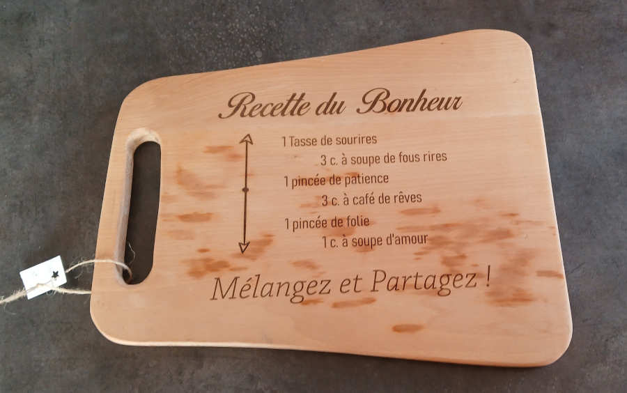 Planche à découper avec recette du bonheur