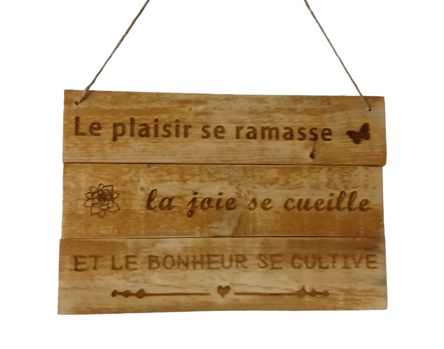 Cadre réalisé à bois de palette, gravé avec belle citation. Dimension : 30 cm x 20 cm